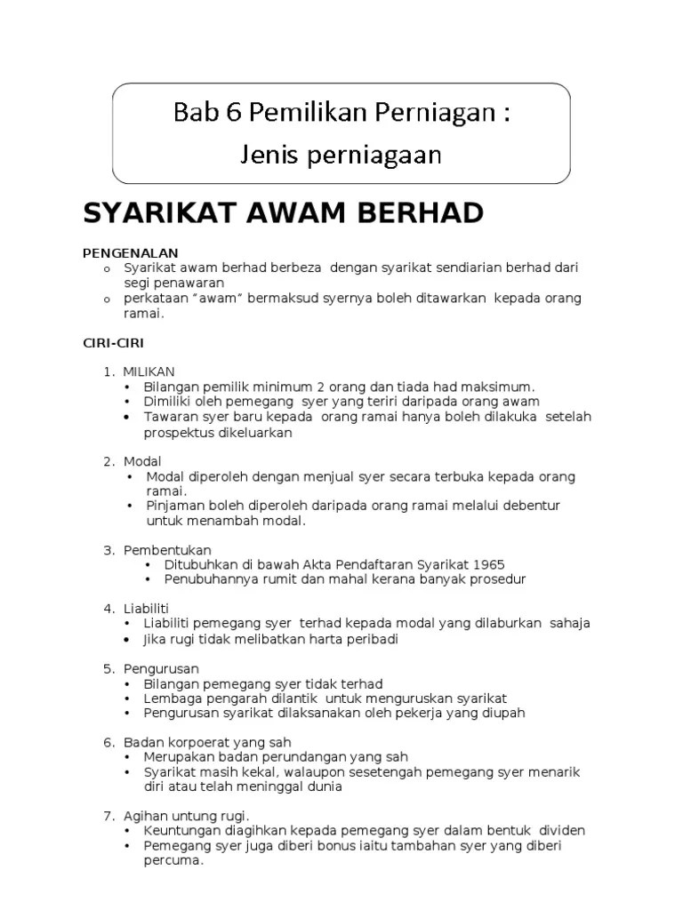 Contoh Syarikat Awam Berhad Di Malaysia : Jenis Dan Ciri Ciri Pemilikan Perniagaan Pdf
